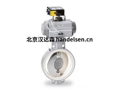 帶氣動密封套的蝶閥,此處帶氣動旋轉(zhuǎn)執(zhí)行機構(gòu)。定位器和流化底座特別適用于計量任務。